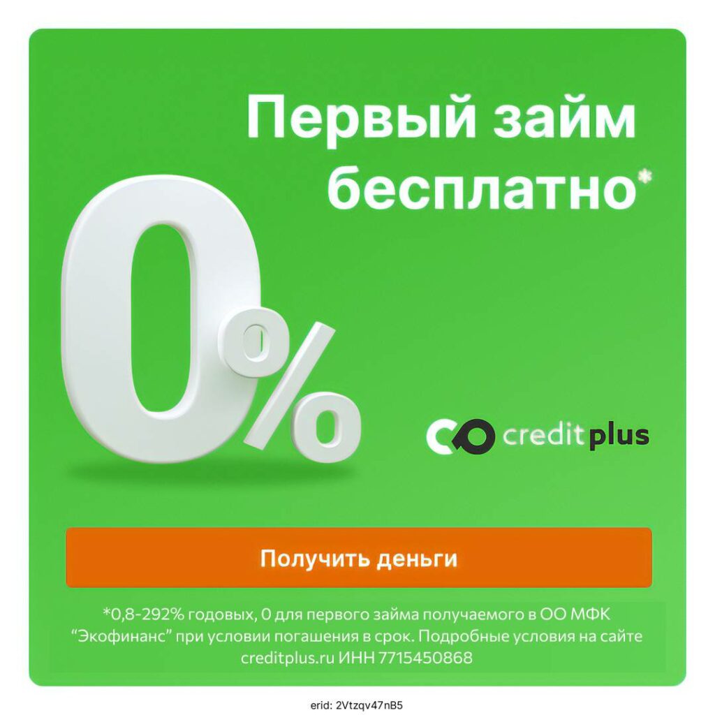 олучите первый займ без переплат в CreditPlus. Всего несколько минут на подачу заявки, и деньги поступят на вашу карту. Необходим только паспорт. Мы предлагаем простые условия: быстрое рассмотрение, высокий процент одобрения и возможность улучшить кредитную историю. Всё прозрачно и без скрытых комиссий. Оформите заявку на сайте ТУТ и получите займ уже сегодня! Изучите все условия кредита (займа) на сайте в соответствующем разделе. Оценивайте свои финансовые возможности и риски.